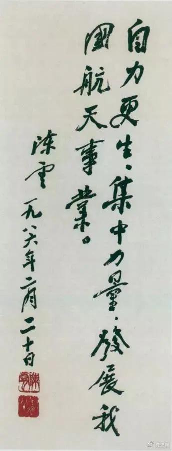 1986年2月20日,陈云为祝贺我国第三颗通讯卫星发射成功给国防科工委题词。